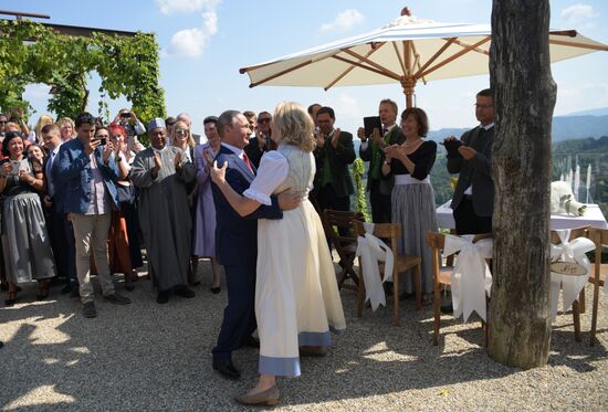 August 18, 2018. Russian President Vladimir Putin after a dance with Austrian Foreign Minister Karin Kneissl at her wedding to entrepreneur Wolfgang Meilinger.18.08.2018#5612219