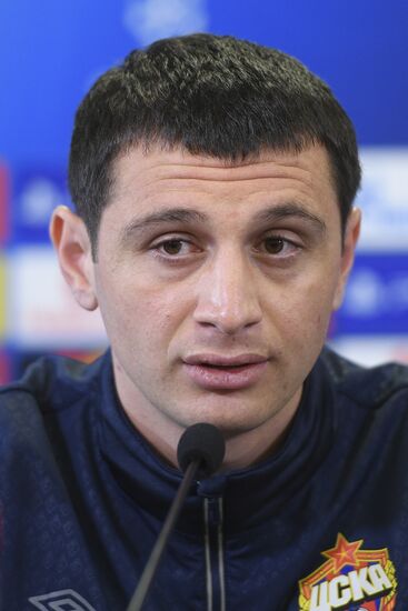 CSKA's Alan Dzagoev talks to the media during a news conference ahead of Champions League soccer match against Real Madrid in Moscow, Russia, October 1, 2018.01.10.2018#5653201