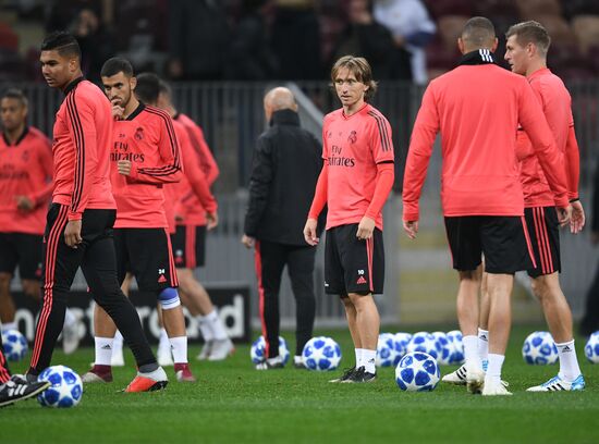 Real's Luka Modric, centre, waits during a training session ahead of Champions League soccer match against CSKA in Moscow, Russia, October 1, 2018.01.10.2018#5653426