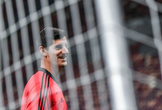 Real's goalkeeper Thibaut Courtois smiles during a training session ahead of Champions League soccer match against CSKA in Moscow, Russia, October 1, 2018.01.10.2018#5653481
