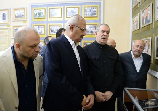 General-secretary of the Syrian National Youth Party Barvin Ibrahim, left, deputy general-secretary of the Popular Front for the Liberation of Palestine Talal Naji third right, and plenipotentiary representative of the Chechen Republic Ziyad Sabsabi, second right, visit the Museum of Akhmat Kadyrov in Grozny, Russia's Chechen Republic, October 25, 2018.25.10.2018#5678663