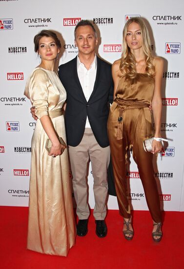 Nikolai Baskov, left, hands Vladimir Presnyakov, right, and Natalia Presnyakova the award for "Most Stylish Couple" at the gala awards ceremony for Hello magazine's "Russia's Most Stylish" Awards at Izvestia Hall.18.04.2012#1098391