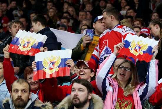 Russia's fans cheer during the ice hockey match between Russia and Finalnd at the Sweden Hockey Games, in Yaroslavl, Russia.07.02.2019#5774301