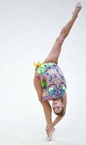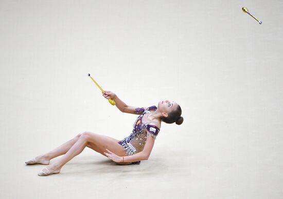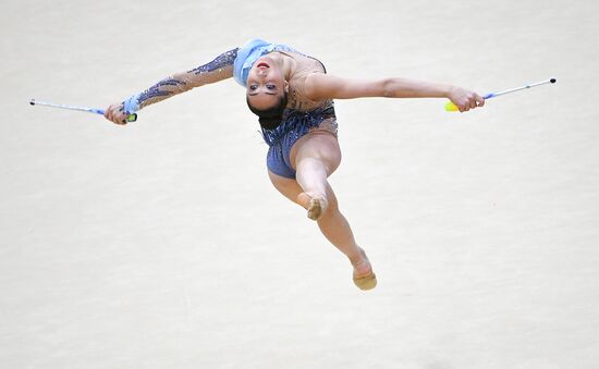 Nicol Voronkov, of Israel, performs her clubs routine during the Rhythmic Gymnastics Grand Prix finals in Moscow, Russia.17.02.2019#5785607
