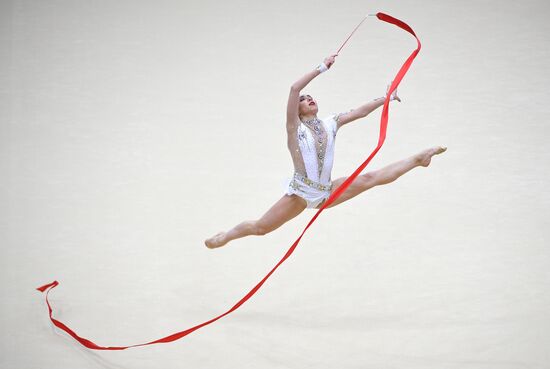 Minagawa Kaho, of Japan, performs her ribbon routine during the Rhythmic Gymnastics Grand Prix finals in Moscow, Russia.17.02.2019#5785671