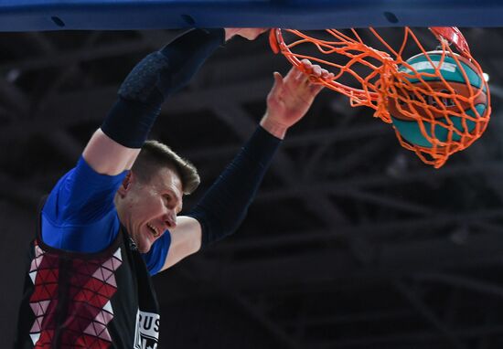 Russia Stars' Andrey Vorontsevich dunks a ball during the basketball All-Star Game between Russia Stars and World Stars in Moscow, Russia. 17.02.2019#5785629