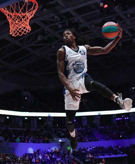 World Stars' Kendrick Perry dunks a ball during the basketball All-Star Game between Russia Stars and World Stars in Moscow, Russia. 17.02.2019#5785744