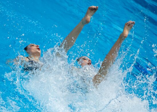Russia's Svetlana Romashina and Svetlana Kolesnichenko perform during the technical duet final at the European Artistic Swimming "Synchronised" Champions Cup competition in St. Petersburg, Russia.11.05.2019#5875078
