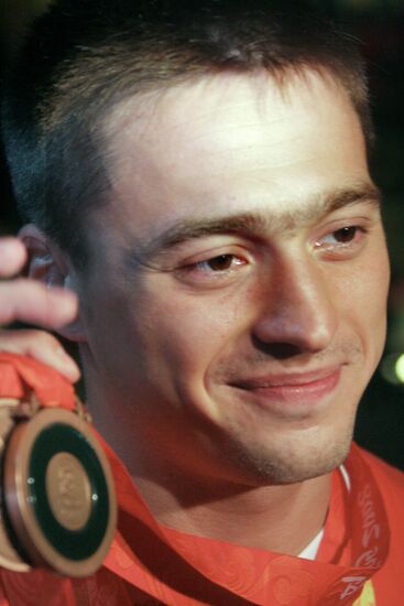 Russian gymnast Anton Golotsutskov earned the Olympic gold medal in the men's vault final of the artistic gymnastics event of the Beijing 2008 Olympic Games.18.08.2008#332016