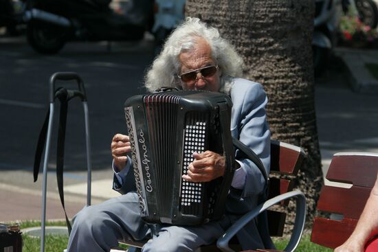 A man with an accordion on Croisette embankment at the 65th Cannes International film festival.25.05.2012#1136644