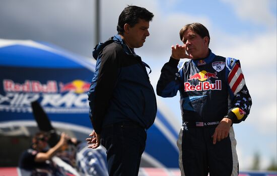 Kirby Chambliss, of United States, right, prepares for the Red Bull Air Race World Championship, in Kazan, Russia.15.06.2019#5916653