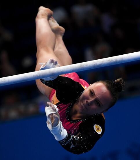 Russia's Aleksandra Shchekoldina performs on uneven bars during the women's artistic gymnastics all-round qualifications at the 2nd European Games in Minsk, Belarus.27.06.2019#5929968