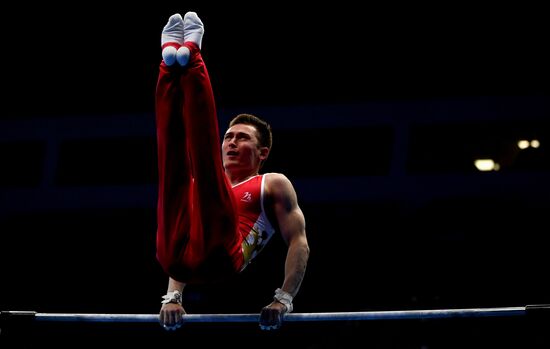 Russia's David Belyavsky performs on parallel bars during the men's all-around artistic gymnastics competition at the 2nd European Games, in Minsk, Belarus.29.06.2019#5933058
