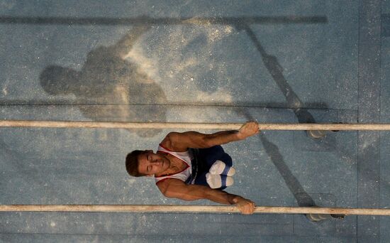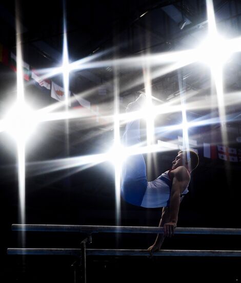 Russia's Vladislav Poliashov performs on parallel bars during the men's all-around artistic gymnastics competition at the 2nd European Games, in Minsk, Belarus.29.06.2019#5933064