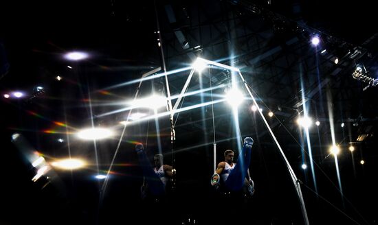 Russia's Vladislav Poliashov performs on rings during the men's all-around artistic gymnastics competition at the 2nd European Games, in Minsk, Belarus.29.06.2019#5933102