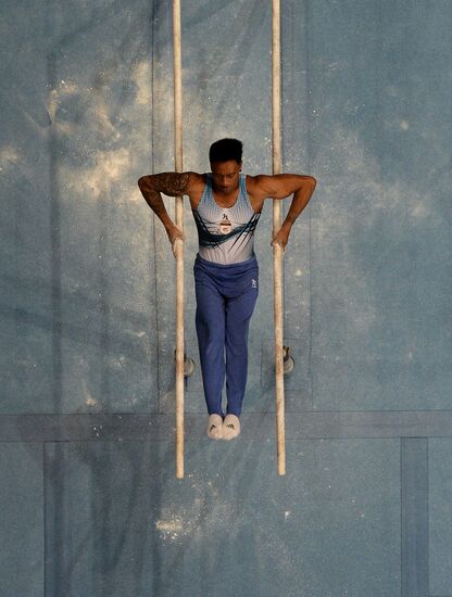 Russia's David Belyavsky is pictured after performing on parallel bars during the men's all-around artistic gymnastics competition at the 2nd European Games, in Minsk, Belarus.29.06.2019#5933060