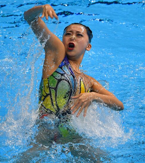 Japan's Abe Atsushi and Adachi Yumi compete during the artistic swimming mixed duet free final at the World Aquatics Championships, in Gwangju, South Korea.20.07.2019#5952552
