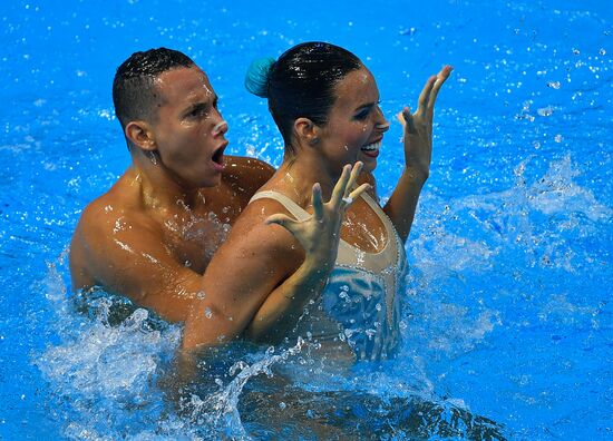 Colombia's Jennifer Cerquera Hatiusca and Gustavo Adolfo Sanchez compete during the artistic swimming mixed duet free final at the World Aquatics Championships, in Gwangju, South Korea.20.07.2019#5952990