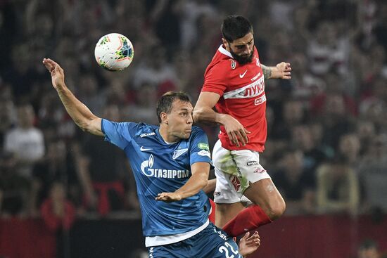 Zenit's Magomed Ozdoev and Spartak's Roman Zobnin struggle for the ball during the Russian Premier-League soccer match between Spartak Moscow and Zenit St. Petersburg in Moscow, Russia.01.09.2019#5994528