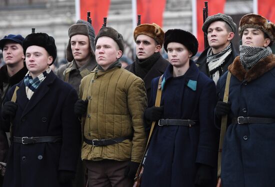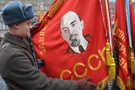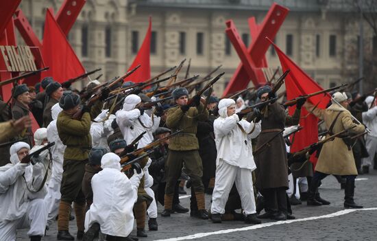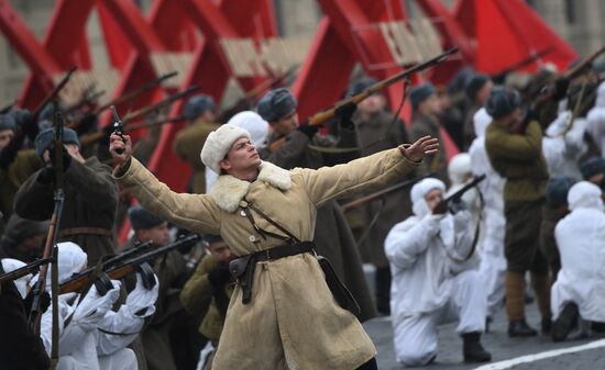 Participants dressed in WWII Red Army uniforms take part in a parade to mark the 78th anniversary of a historical parade in 1941, when Soviet soldiers marched towards the front lines during World War Two, on Red Square in Moscow, Russia. 07.11.2019#6066432