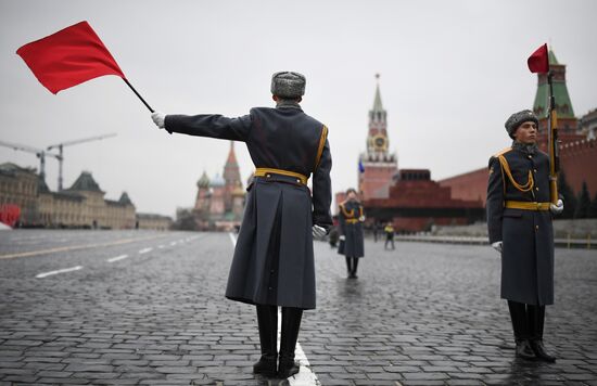 A Russian hohour guard officer commands as soldiers prepare for a rehearsal of the historical parade to commemorate the 78th anniversary of the military parade at the Red Square, in Moscow, Russia. Soldiers were sent straight from the parade on November 7, 1941, to the front to fight the invading Nazis.05.11.2019#6064430