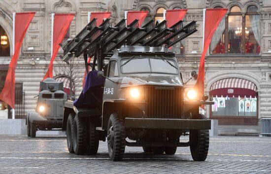 Katyusha multiple rocket launcher installed on Studebaker US6 truck is pictured during a rehearsal of the historical parade to commemorate the 78th anniversary of the military parade at the Red Square, in Moscow, Russia. Soldiers were sent straight from the parade on November 7, 1941, to the front to fight the invading Nazis.05.11.2019#6064462