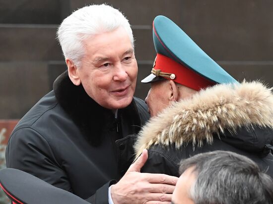 Moscow's Mayor Sergei Sobyanin speaks with a veteran during a military parade to mark the 78th anniversary of a historical parade in 1941, when Soviet soldiers marched towards the front lines during World War Two, on Red Square in central Moscow, Russia.07.11.2019#6066461