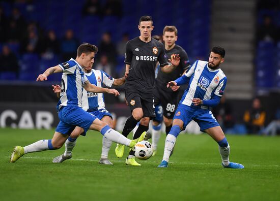 CSKA's Kristijan Bistrovic, center, struggles for a ball during the Europa League soccer match between RCD Espanyol and CSKA Moscow, in Barcelona, Spain. 12.12.2019#6105114