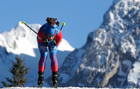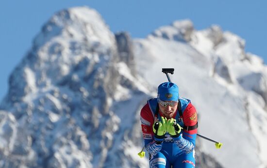 Russia's Alexander Loginov competes during the men 10 km sprint competition at the Biathlon World Cup, in the village of Le Grand Bornand outside Annecy, France.19.12.2019#6111113