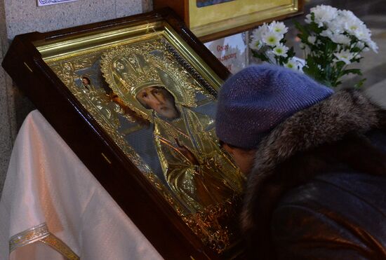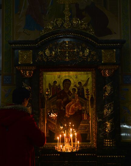 A woman attends a service on Orthodox Christmas Eve at the Peter and Paul Cathedral in Simferopol, Russia. 07.01.2020#6125397