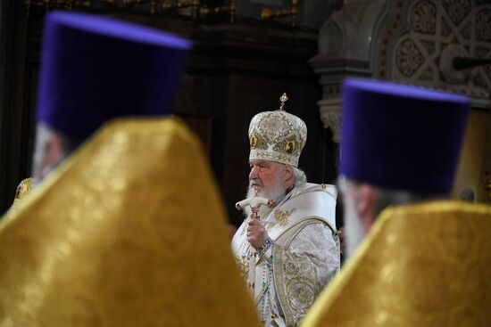 Russian Orthodox Patriarch Kirill conducts a service on Orthodox Christmas Eve at the Cathedral of Christ the Saviour, in Moscow, Russia.06.01.2020#6125213