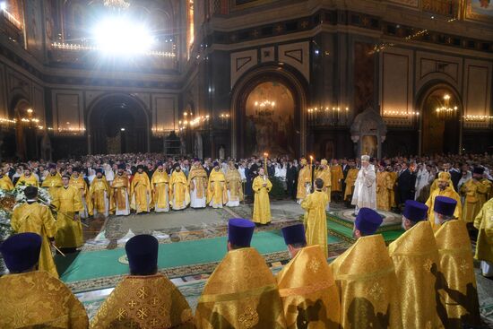 People attend a service on Orthodox Christmas Eve at the Cathedral of Christ the Saviour, in Moscow, Russia.06.01.2020#6125191