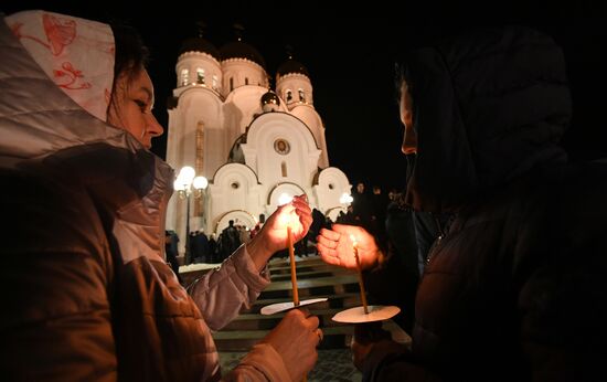 People attend a service on Orthodox Christmas Eve at the Peter and Paul Cathedral in Simferopol, Russia. 07.01.2020#6125394