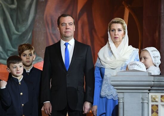 Russian Prime Minister Dmitry Medvedev and his wife Svetlana attend a service on Orthodox Christmas Eve at the Cathedral of Christ the Saviour, in Moscow, Russia.07.01.2020#6125288