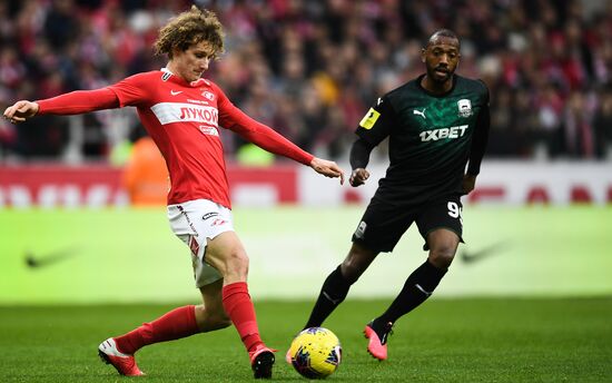 Spartak's Zelimkhan Bakaev, left, controls a ball during the Russian Premier-League soccer match between Spartak Moscow and Krasnodar, in Moscow, Russia.09.03.2020#6192664