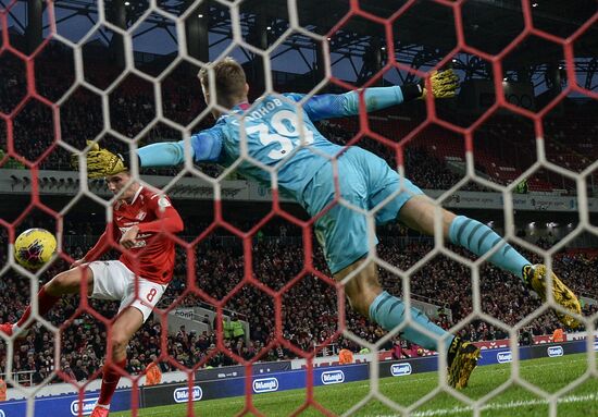 Spartak's goalkeeper Aleksandr Maksimenko concedes a goal during the Russian Premier-League soccer match between Spartak Moscow and Krasnodar, in Moscow, Russia.09.03.2020#6192670