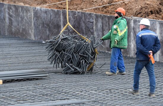 Workers are pictured on the construction of a new building at the Republican clinical infectious diseases hospital in Kazan, Republic of Tatarstan, Russia. The total area of the hospital building will be 15 thousand square meters, it is designed for 232 beds.29.04.2020#6231348