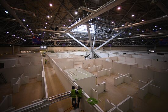 A view shows a construction site of a temporary hospital for COVID-19 patients at Sokolniki Exhibition and Convention Centre, in Moscow, Russia.15.05.2020#6242776