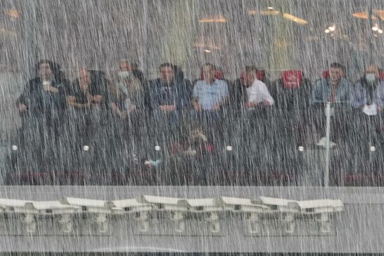 A heavy rain is pictured during the Russian Premier-League soccer match between Spartak Moscow and Lokomotiv Moscow, in Moscow, Russia.08.07.2020#6282486