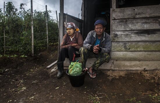 From left, a Karonese woman, Lidiana Br Bangun, 44 years old, poses with her husband Mimin Ginting, 45 years old, at their new plantation in Siosar relocation settlement for Sinabung volcano disaster victims in Karo, North Sumatra province, Indonesia. On total of 28 people died after being hit by giant hot clouds from the last eruption of the Sinabung volcano in 2010, 2014, and 2016 including eruption on the 10th of August, 2020. Experts researched as many as 800 million people live and do their activities within 100 kilometers, or about 62 miles, of volcanic craters around the world.18.09.2020#6340580
