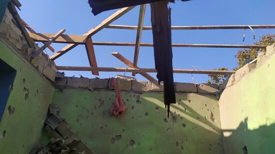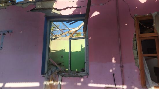 A view shows a damaged house hit by the recent shelling, in the village of Tezakend, the self-proclaimed Republic of Nagorno-Karabakh.. The situation in Nagorno-Karabakh escalated on September 27, when Yerevan and Baku accused each other of provoking military hostilities.03.10.2020#6347690