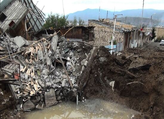 A view shows a damaged house hit by the recent shelling, in the village of Tezakend, the self-proclaimed Republic of Nagorno-Karabakh.. The situation in Nagorno-Karabakh escalated on September 27, when Yerevan and Baku accused each other of provoking military hostilities.03.10.2020#6347692