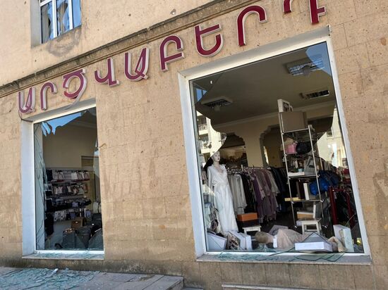 Windows of a shop are broken after the shelling, in Stepanakert, the self-proclaimed Nagorno-Karabakh Republic. The deadly confrontation between Azerbaijan and Armenia over the disputed Armenian-dominated region of Karabakh has been ongoing since late September.17.10.2020#6359605