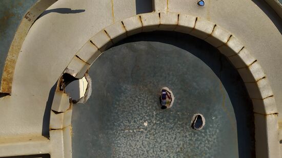 A view shows a fence destroyed by recent shelling, in Agdam district, a self-proclaimed Nagorno-Karabakh Republic. The deadly confrontation between Azerbaijan and Armenia over the disputed Armenian-dominated region of Karabakh has been ongoing since late September.17.10.2020#6359619