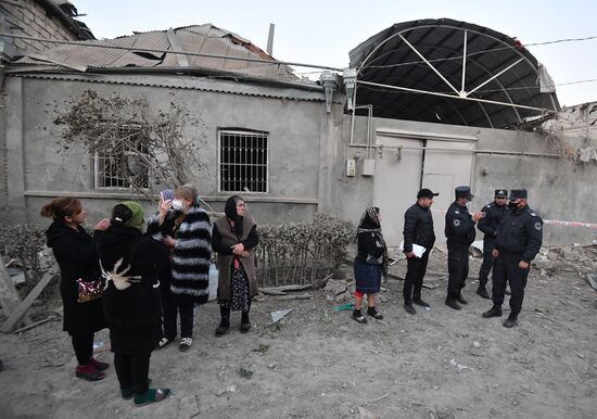 People attend a site of residential building destroyed after the recent shelling by Armenian forces, in Ganja, Azerbaijan. The deadly confrontation between Azerbaijan and Armenia over the disputed Armenian-dominated region of Karabakh has been ongoing since late September. 17.10.2020#6359848
