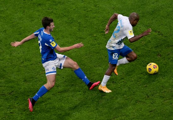 Dynamo's Sergei Parshivlyuk and Sochi's Anton Zabolotny struggle for a ball during the Russian Premier-League soccer match between Sochi and Dynamo Moscow, in Sochi, Russia.16.12.2020#6420747
