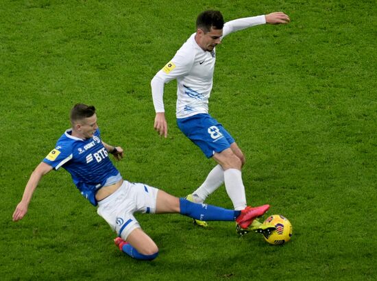 Dynamo's Vyacheslav Grulyov and Sochi's Ivan Novoseltsev struggle for a ball during the Russian Premier-League soccer match between Sochi and Dynamo Moscow, in Sochi, Russia.16.12.2020#6420687