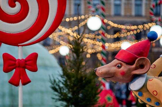Decorations for the upcoming New Year and Christmas season are seen at the Christmas fair, in St. Petersburg, Russia.20.12.2020#6423848