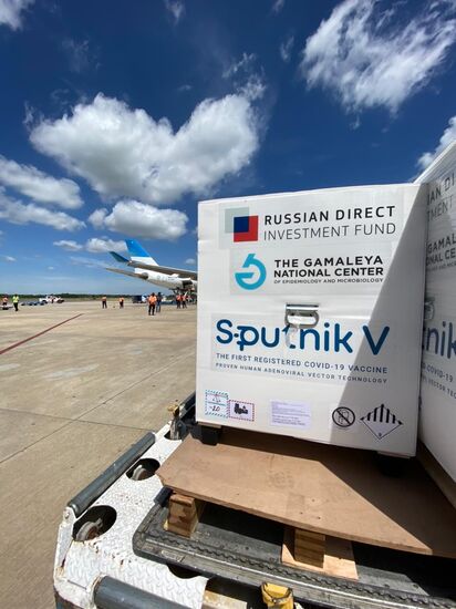 In this handout photo released by the government of Buenos Aires, a plane with Russia's coronavirus vaccine Gam-COVID-Vac, trade-named Sputnik V on board is unloaded upon arrival at Buenos Aires, Argentina. Editorial use only, no archive, no commercial use.16.01.2021#6439629