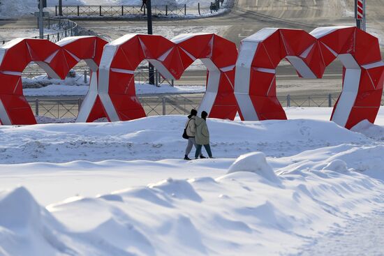 Alpacas Romeo, right, and Juliette as bride and groom participate in the celebration of St. Valentine's Day at the Roev Ruchey Zoo, in Krasnoyarsk, Russia. 14.02.2021#6462097